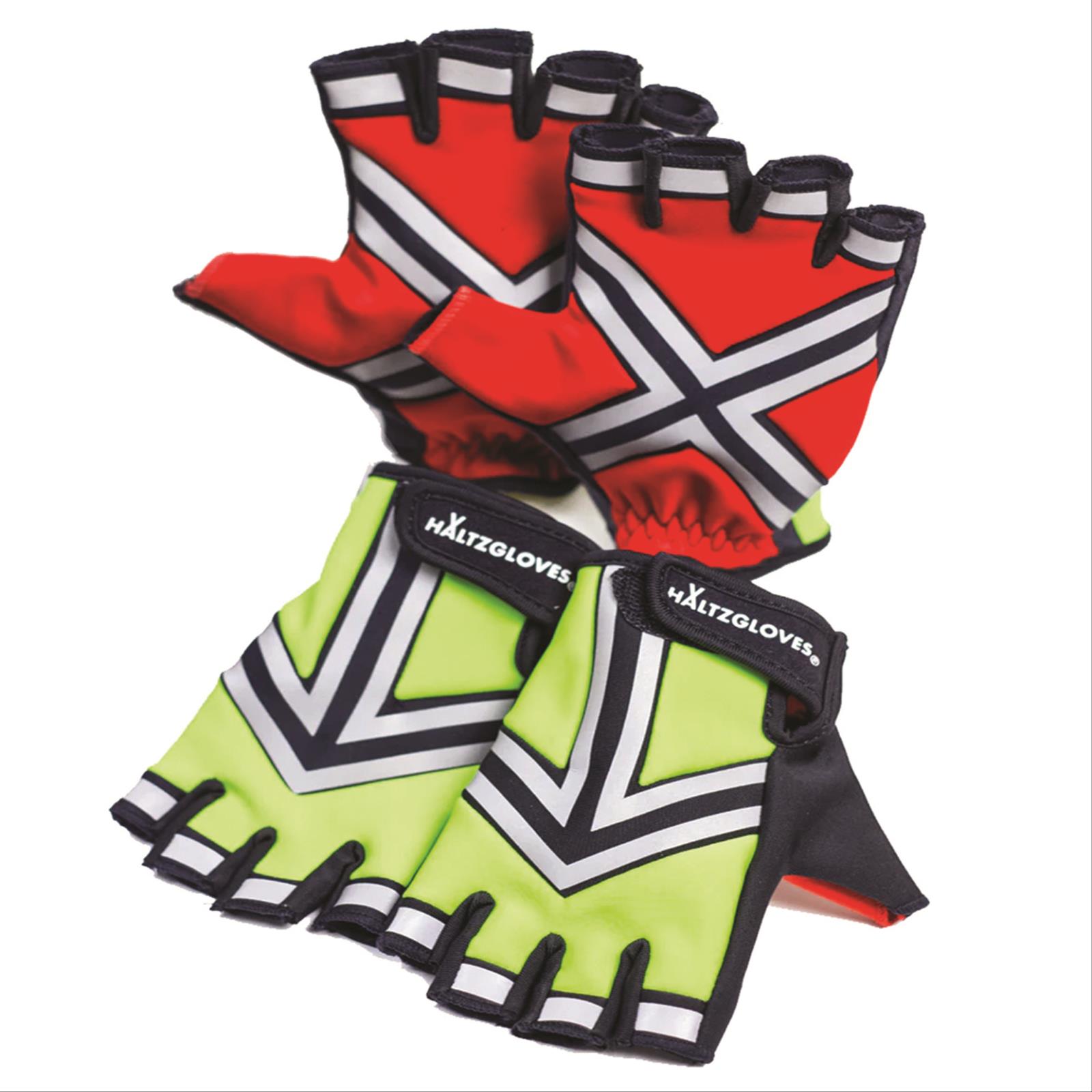 Gloves are constructed solely of OSHA’s approved high viz material with reflective X on palm to indicate ‘stop’ and on back of hand with arrows on the top to signal ‘go.’